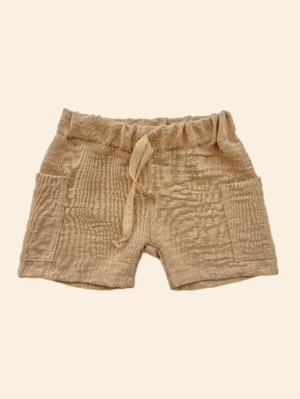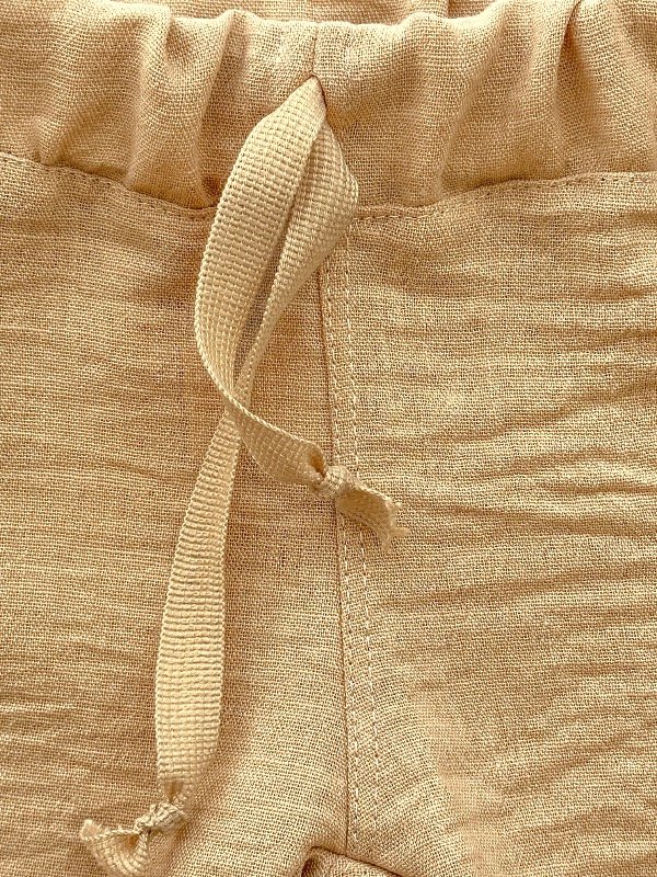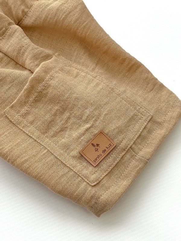 bermuda símil lino súper fresca . Elástico en cintura y cordón ajustable.